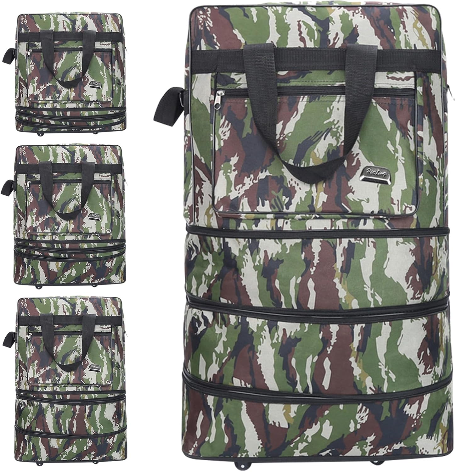 30" Expandable Duffel Bag w/Wheels and Handle, Foldable Carry-On Luggage Waterproof Lightweight for Gym, Camping, Weekend Trips, Business Travel, Weekend Green Camo