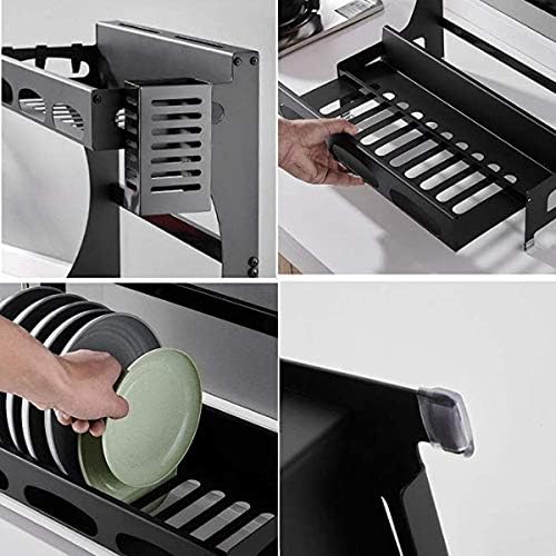 Material:Rust Resistant Material Color: Black Size:44x23x44cm Feature:Sustainable,Rust Proof,Anti Corrosion. Dish Rack Owns Big Storage Capacity:The Inside Partition Pile Design Is Convenient To Store The Dish And Cup In Order.besides,There Is A Small Compartment Especially For Spoons,Chopsticks And Forks. Drainage Hole Design: The Dish Rack Can Be Easily Discharge The Stagnant Water Through The Drainage Hole Without Reversal The Whole Dish Rack. Hook Design:The Side Hook Is Designed To Storage Those Small Items.put The Dish Rack In The Side Of The Sink And Those Items On The Hook Will Be Drained With Water Directly Flowing Into The Sink. Scope Of application:The Dish Rack Is Suitable For Dish,Bowl,Cup,Chopsticks,Fork,Knife And So On. Rust Resistant Material:The Whole Dish Rack Is Made Of Thick Stainless Steel With A Black Rust-resistant Coating And Non-marring Suction Cup Feet,Rustproof And durable.