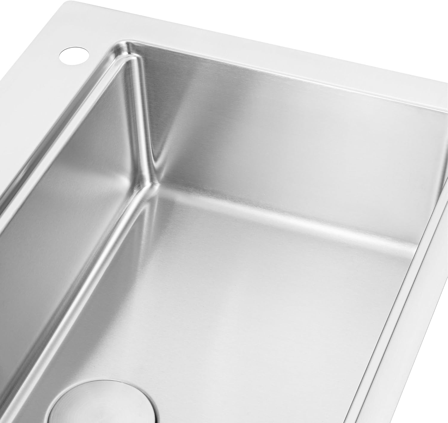 | Included Components | Sink, bamboo cutting board, roll-up drying rack, stainless steel bottom rinse grid, basket strainer drain assembly, decorative drain cover, cut-out template, and mounting brackets. |
