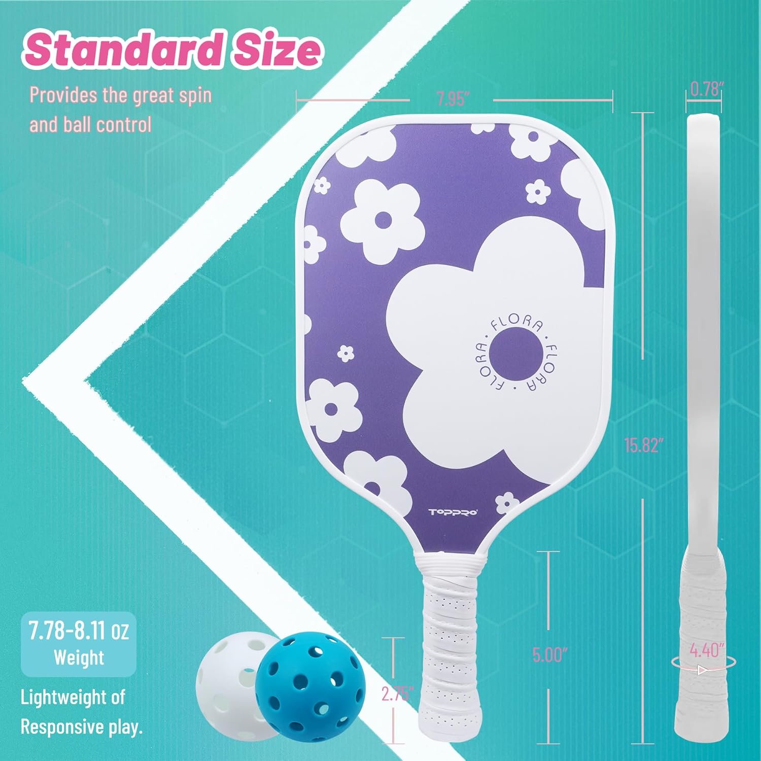TOPPRO Pickleball Paddles Set of 2, Fiberglass Face, Polypropylene Honeycomb Core, Lightweight Pickleball Rackets 2 Pack