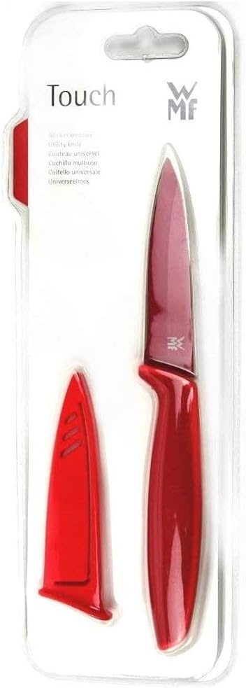 Product Description WMF Red Touch Utility Knife in red attractive trendy colour with non-stick coatingYour kitchen will be more colourful with the Touch knife series. The Touch blade is made of special blade steel with a non-stick coating. The matching cover protects you and the knife at the same time. 20 cm blade length. Set Contains: 1 x Knife